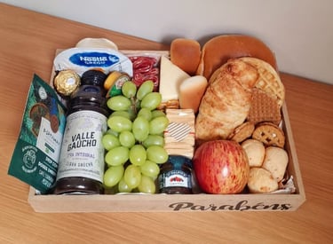 Nossas cestas são montadas no estilo "Grazing food", um formato moderno e artesanal em que os produtos são dispostos sem embalagens individuais, valorizando a beleza natural e a harmonia visual da cesta. Todos os itens são colocados cuidadosamente, com atenção à higiene e à estética. O resultado é uma composição perfeita para surpreender com elegância e bom gosto. Para solicitar, escolha a cesta e entre em contato pelo nosso WhatsApp para pagamento e agendamento da entrega. Em seguida é só aguardar. Faremos a entrega no dia e horário combinados com o cliente. Atendemos diversos bairros e regiões da cidade do Rio de Janeiro. Para outros municípios da Região Metropolitana, consulte essa possibilidade.
